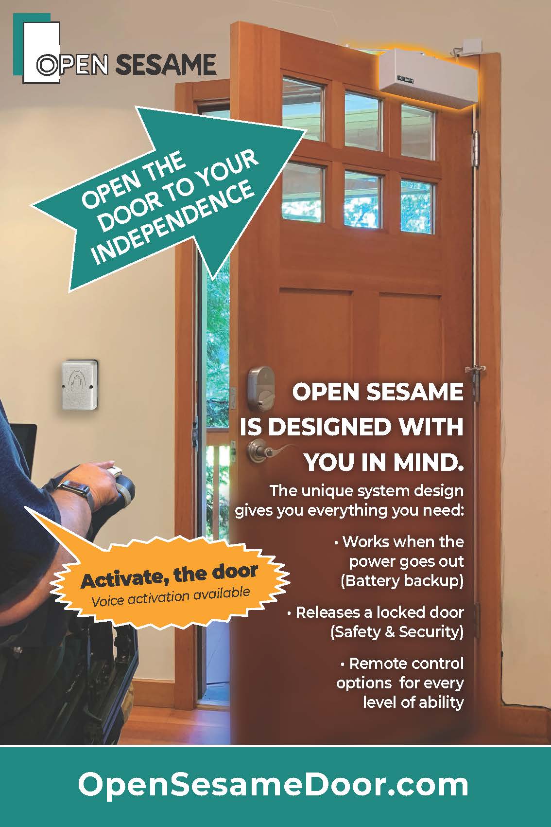 Open Sesame is a voice activated automatic door opener that works on any free swinging door: front door, storm door, interior door, gate, lift & residential elevator.